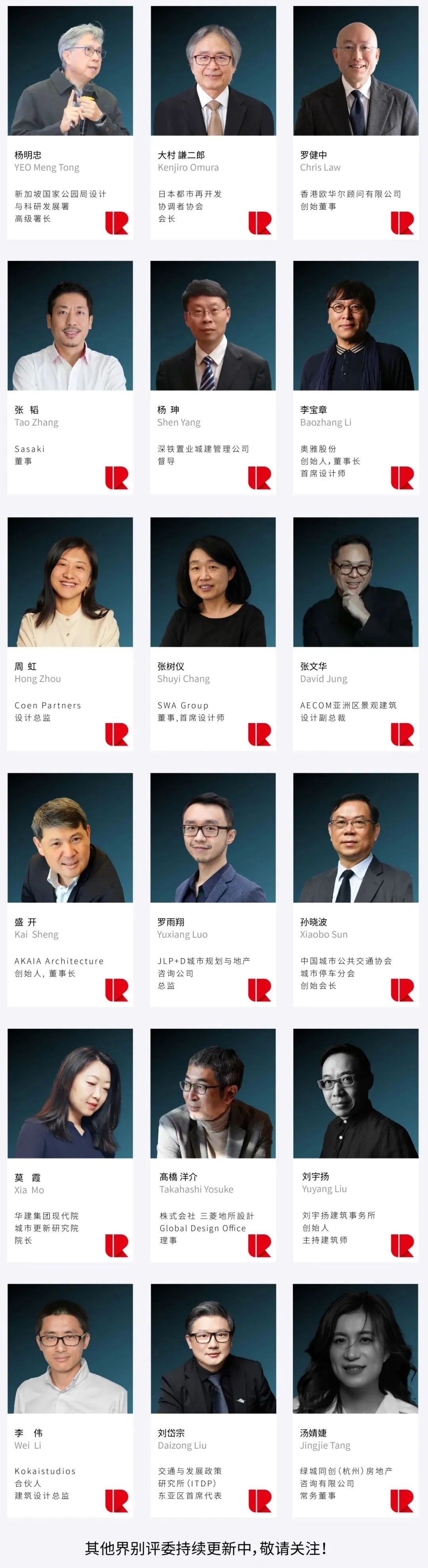 亚洲城市更新奖(AURA)的评委来自不同国家和专业领域,均为行业内资深专家,拥有不同专业背景和广阔的视野,包括开发、设计、运营、行政管理、法律等,能够从多个维度和视角对参赛项目进行公正、客观的评价。