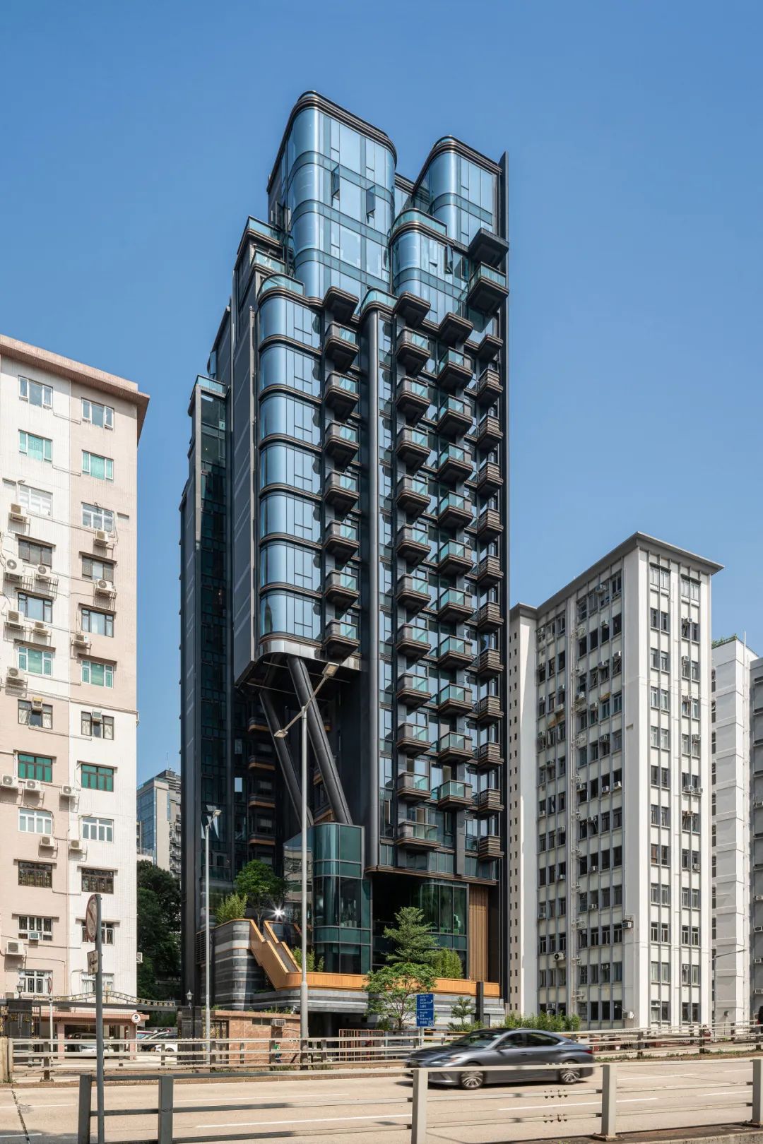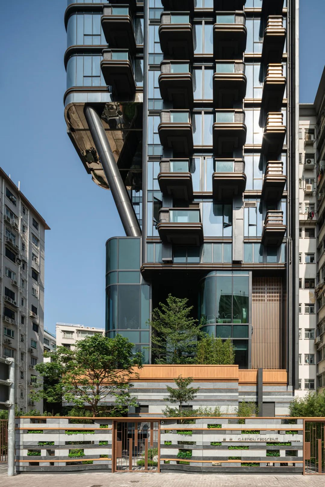 大楼的外立面借助造型独特的倾斜结构支柱,增加建筑通透性,促进自然通风,改善了社区微气候。为进一步倡导绿色生活,设计团队还专门在公寓阳台和厨房预留花槽。居民可自由栽种植物和蔬果,亲身体验“从农场到餐桌”的乐趣。
