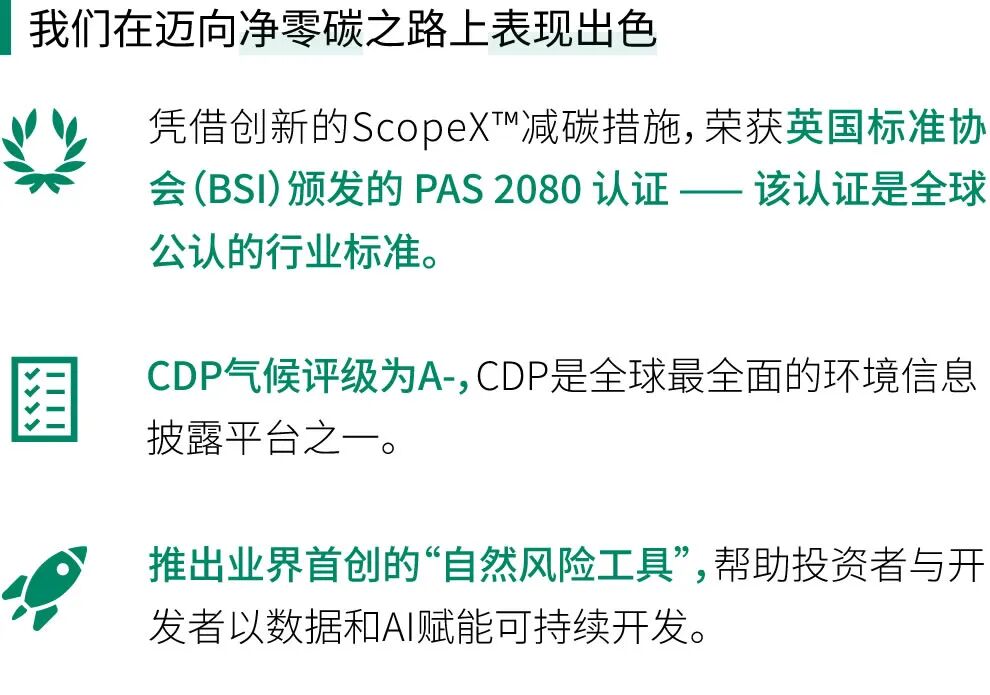建筑产生的碳排放(含建材、施工、运营)占全球约40%。因此,在过去数年间,我们为全球大型项目提供施工及项目管理服务时,通过数据收集与分析,以及改善施工建材方案,持续协助业主降低碳足迹,推动行业减排。