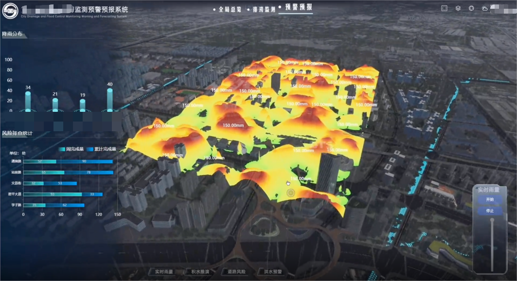 项目构建极端暴雨内涝仿真数字模型,构建仿真模型覆盖600平方公里,识别易淹区7600ha,2025 年汛期预警172个积水点位,处置提前1小时,保障服务世运会重大活动。